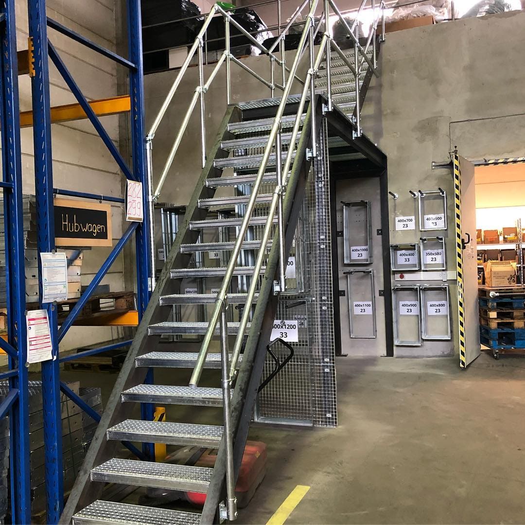 Hier kommen unsere gezahnten Trag- und Füllstäbe zum Einsatz. Diese erreichen die Bewertungsgruppen R11 oder R12. Durch kleine Ausstanzungen im Stahlkragen entsteht ein "Sägeblatt-Effekt", der selbst bei Öl, Fett oder Glatteis für extremen Halt sorgt. Ein Muss für jede Fluchttreppe im Aussenbereich.